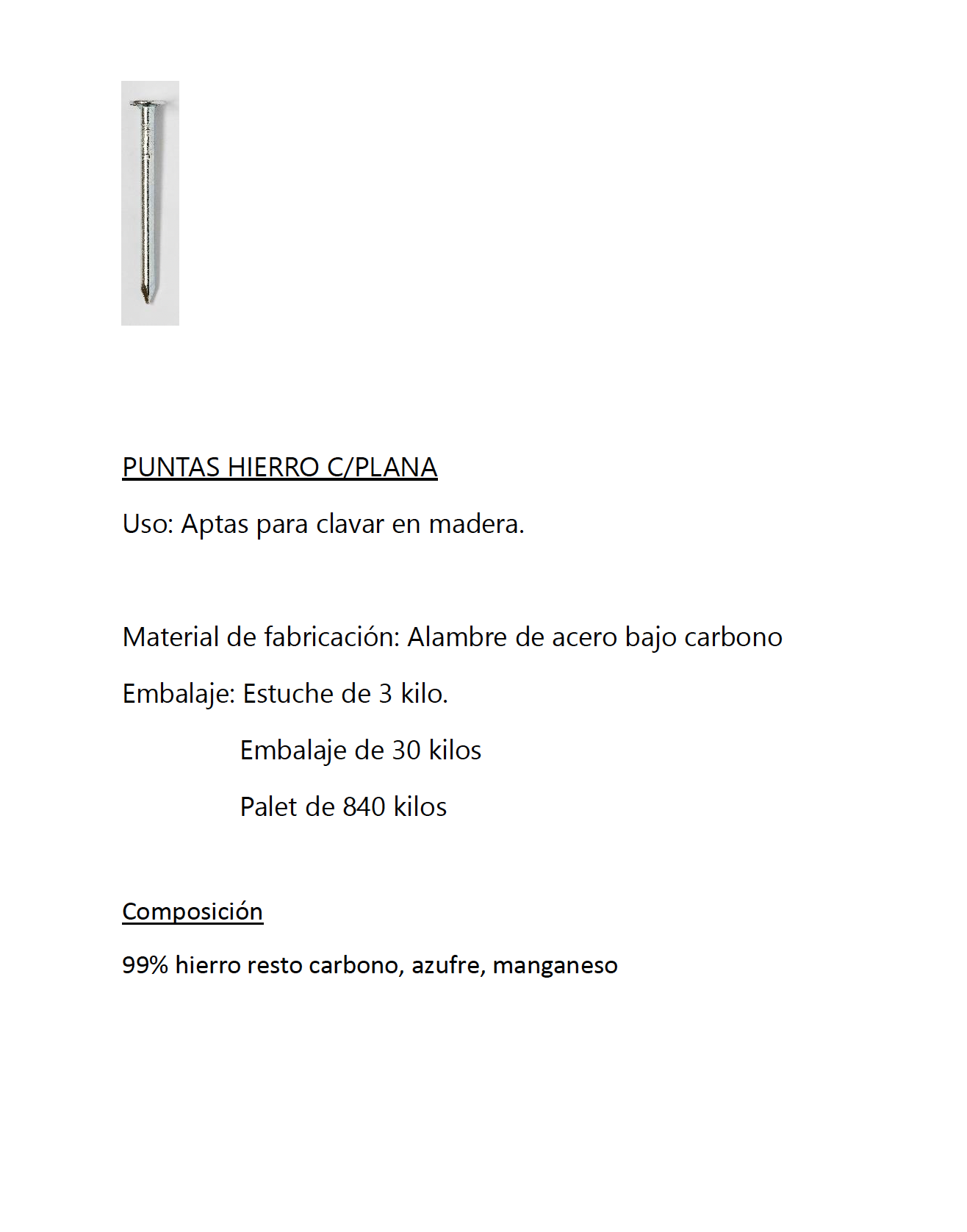 Caja Puntas de Hierro Camacho Cabeza Plana