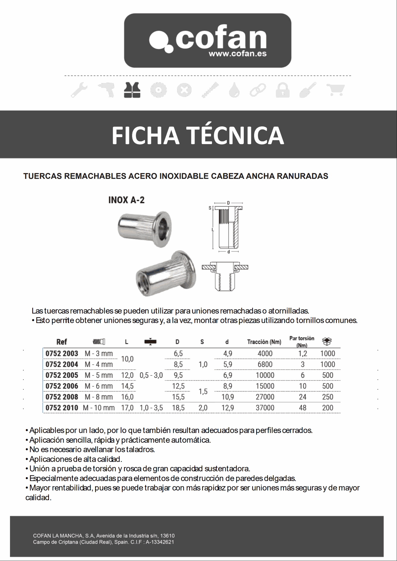 Tuerca Remachable Ranurada Inox A2 M8 Ref. 07522008