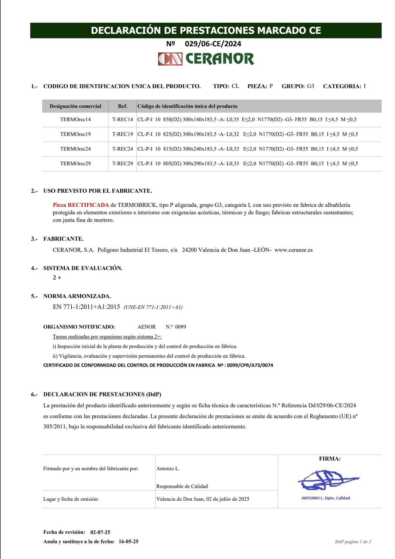 ZUNCHO TERMOBRICK CERANOR 24X18X24)