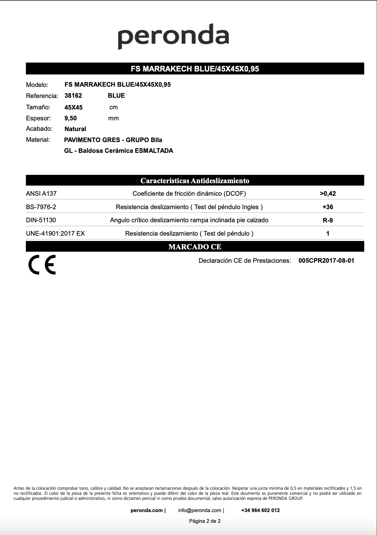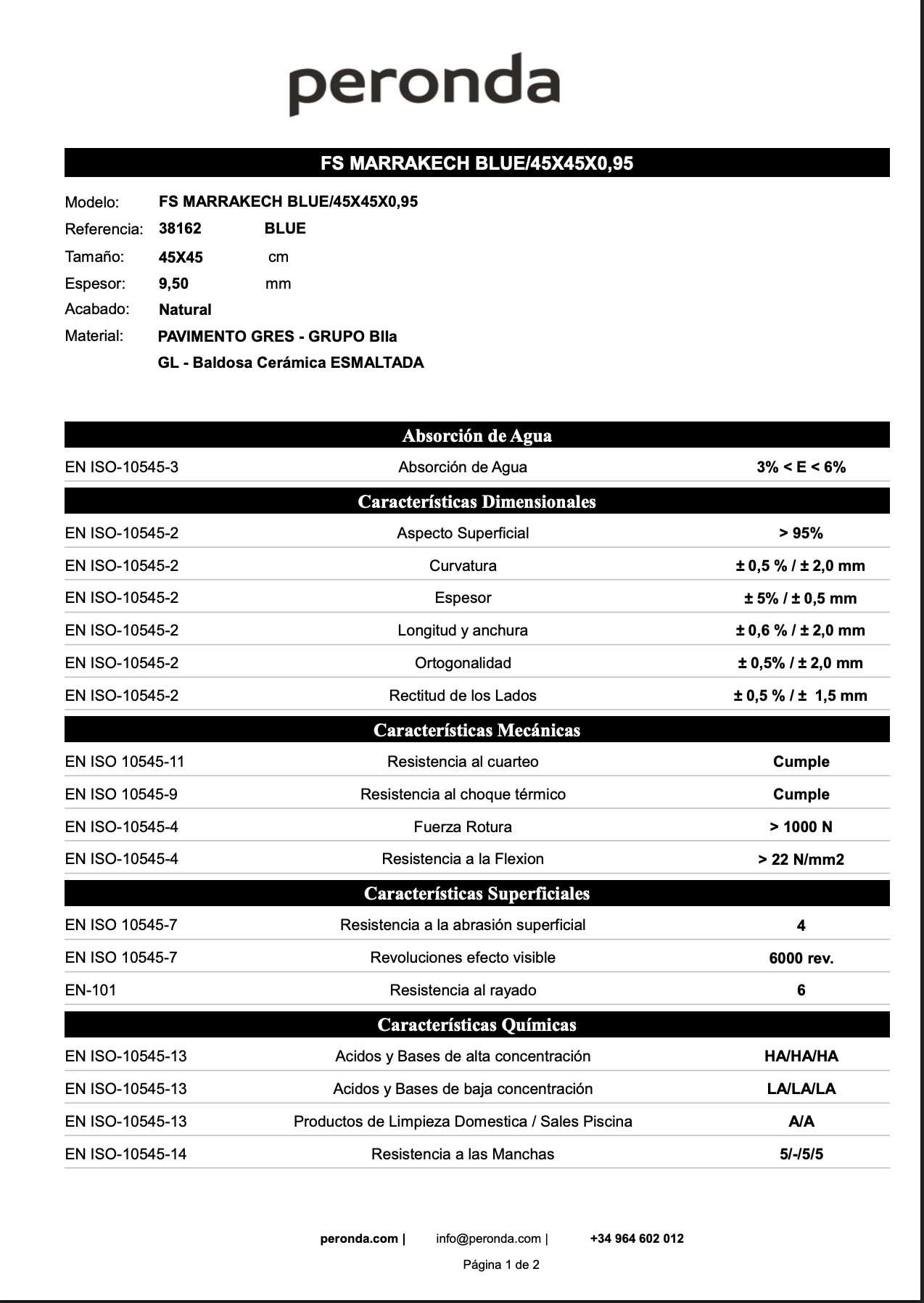 Pavimento de la fábrica Peronda. Gres para interior. 10,5mm de espesor.