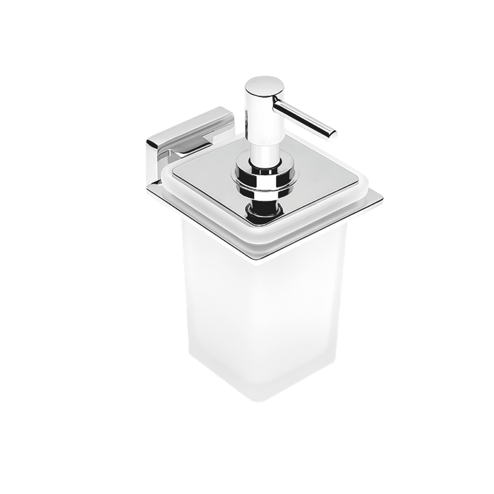 Dosificador de pared cromado con recipiente de cristal y válvula dosificadora 81x160x99 mm Ref.EV-99