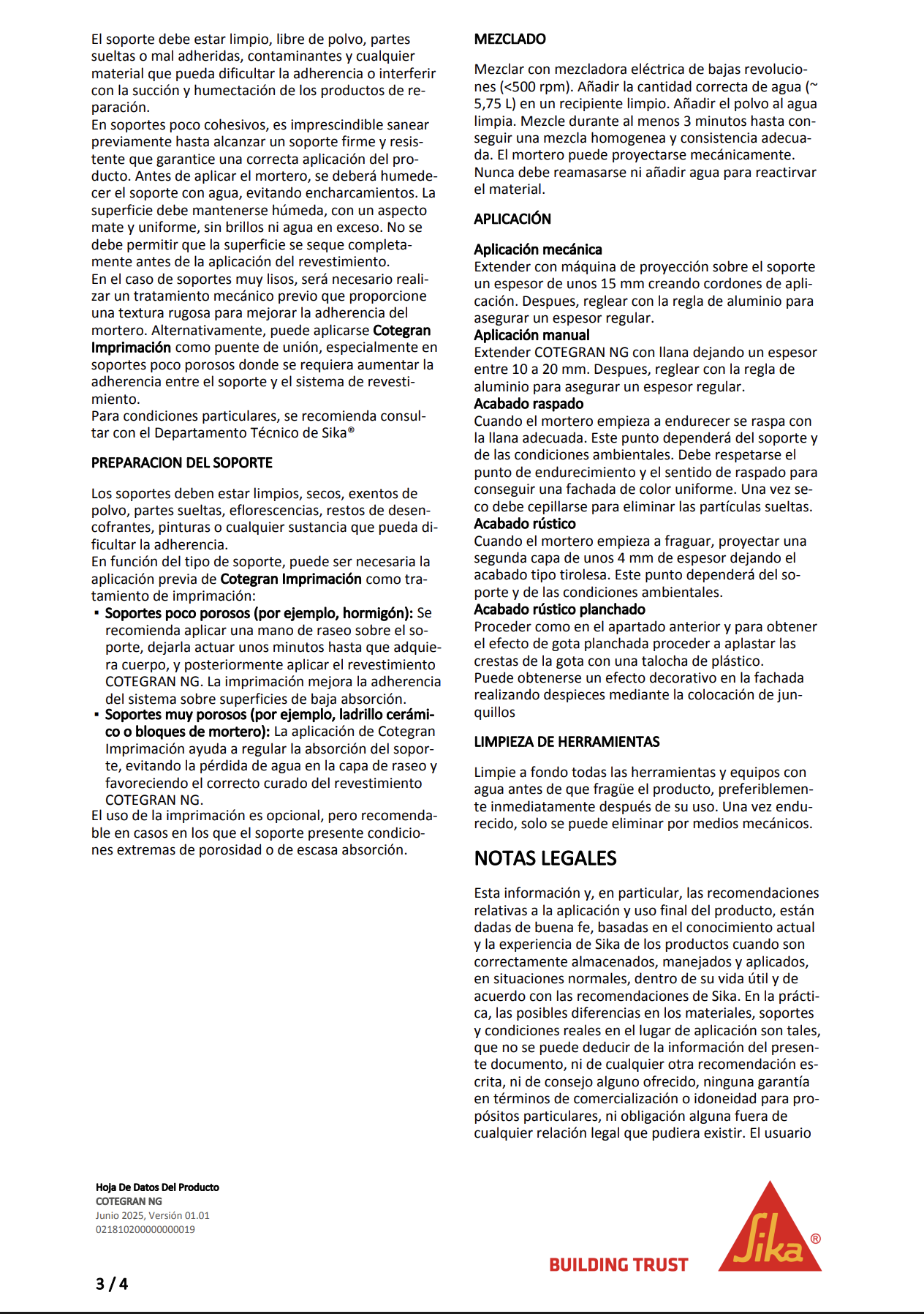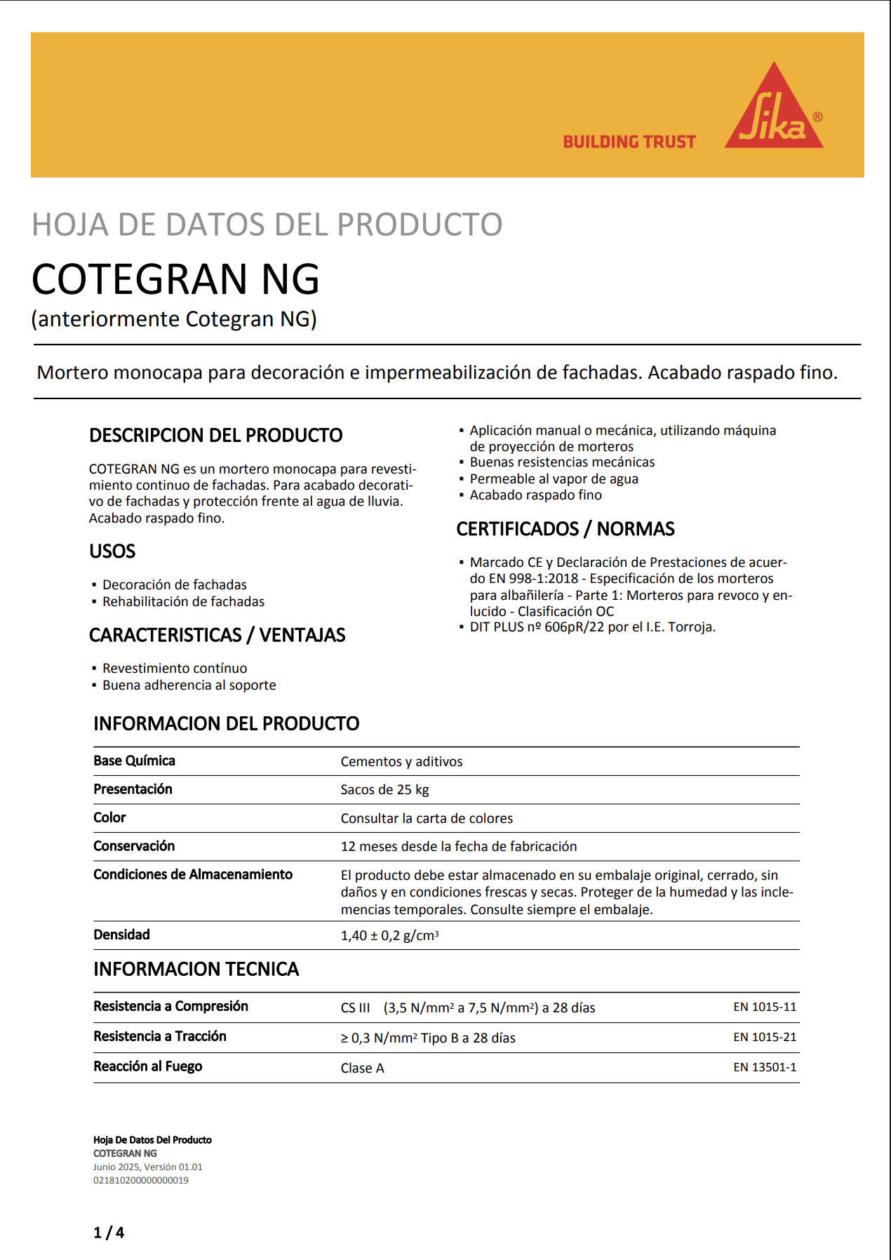 Saco mortero monocapa para la decoración de impereabilización de fachadas y su protección frente al agua de lluvias.