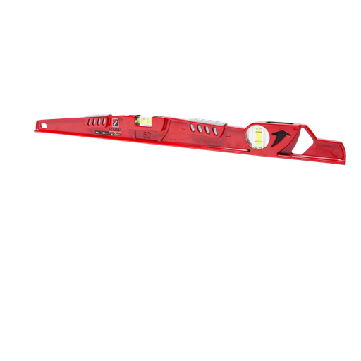 Nivel fabricado en perfil de aluminio de sección rectangular , sin renunciar a la resistencia, gracias a los nervios longitudinales que aportan un refuerzo estructural.