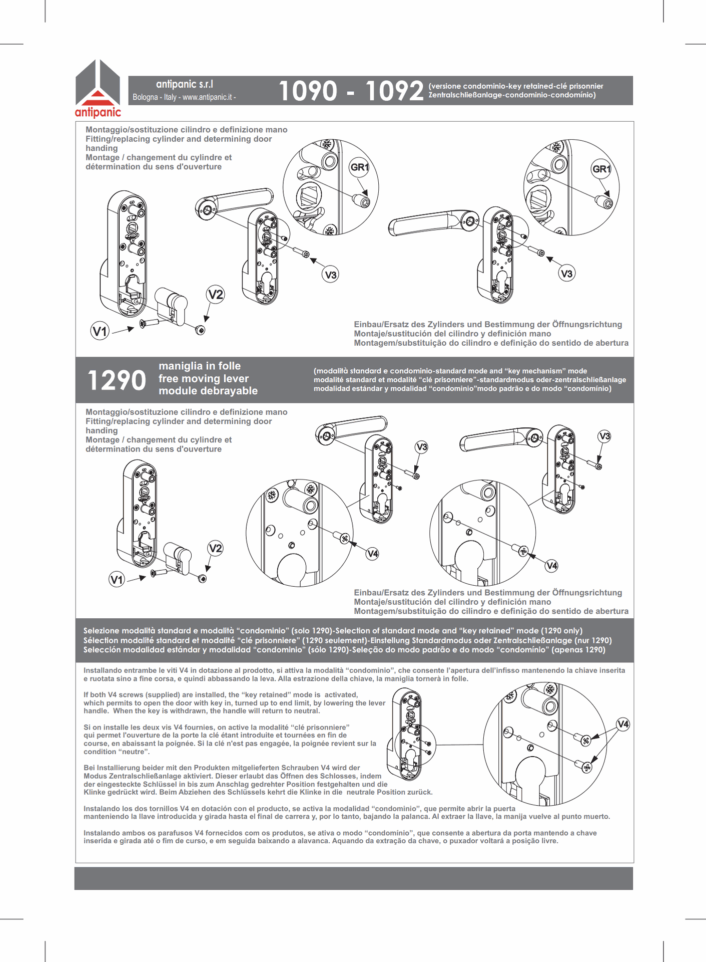 Manivela Antipánico de sobreponer con cilindro y 3 llaves en color negro.