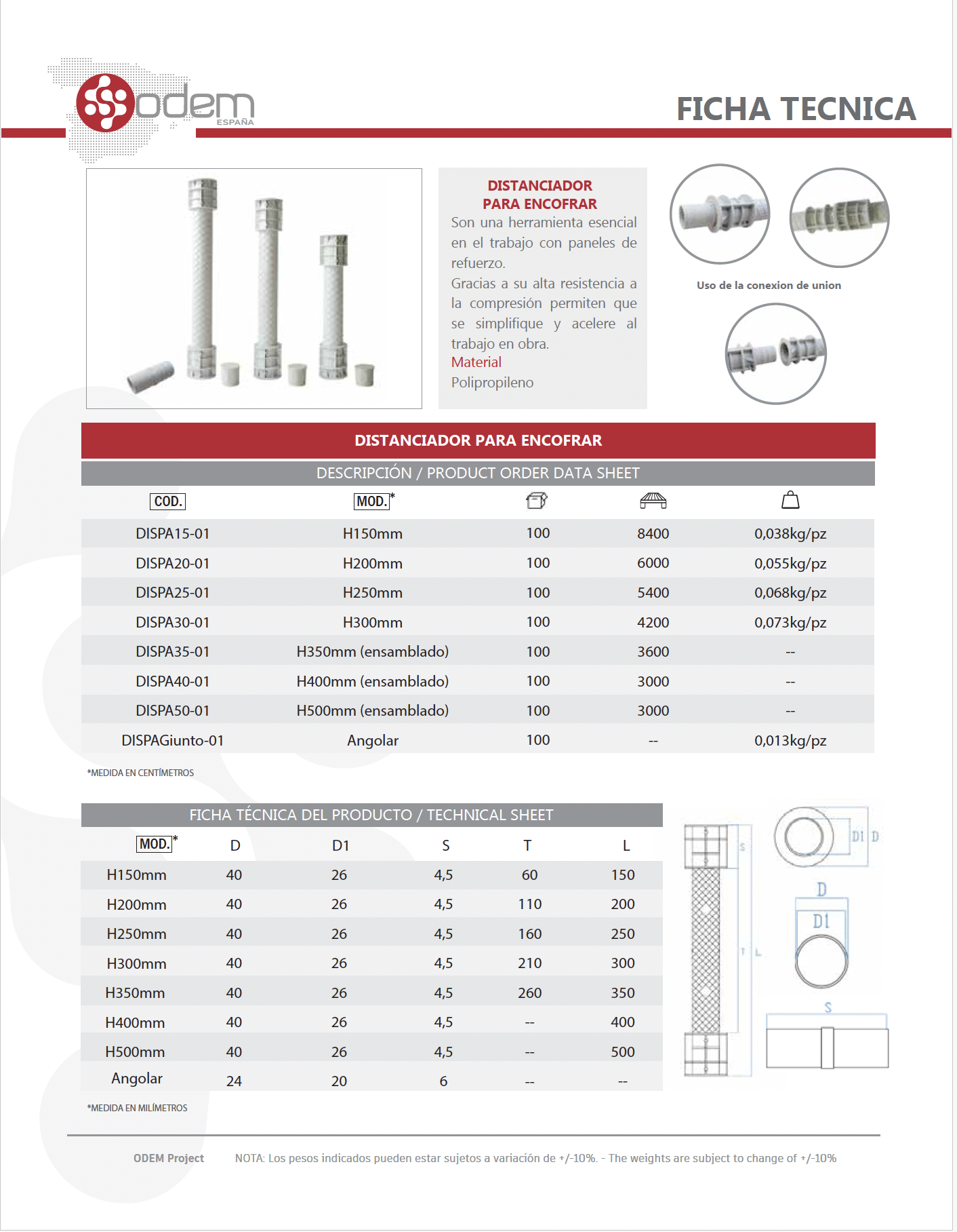 Distanciador para encofrar fabricado en polipropileno, distintas medidas.