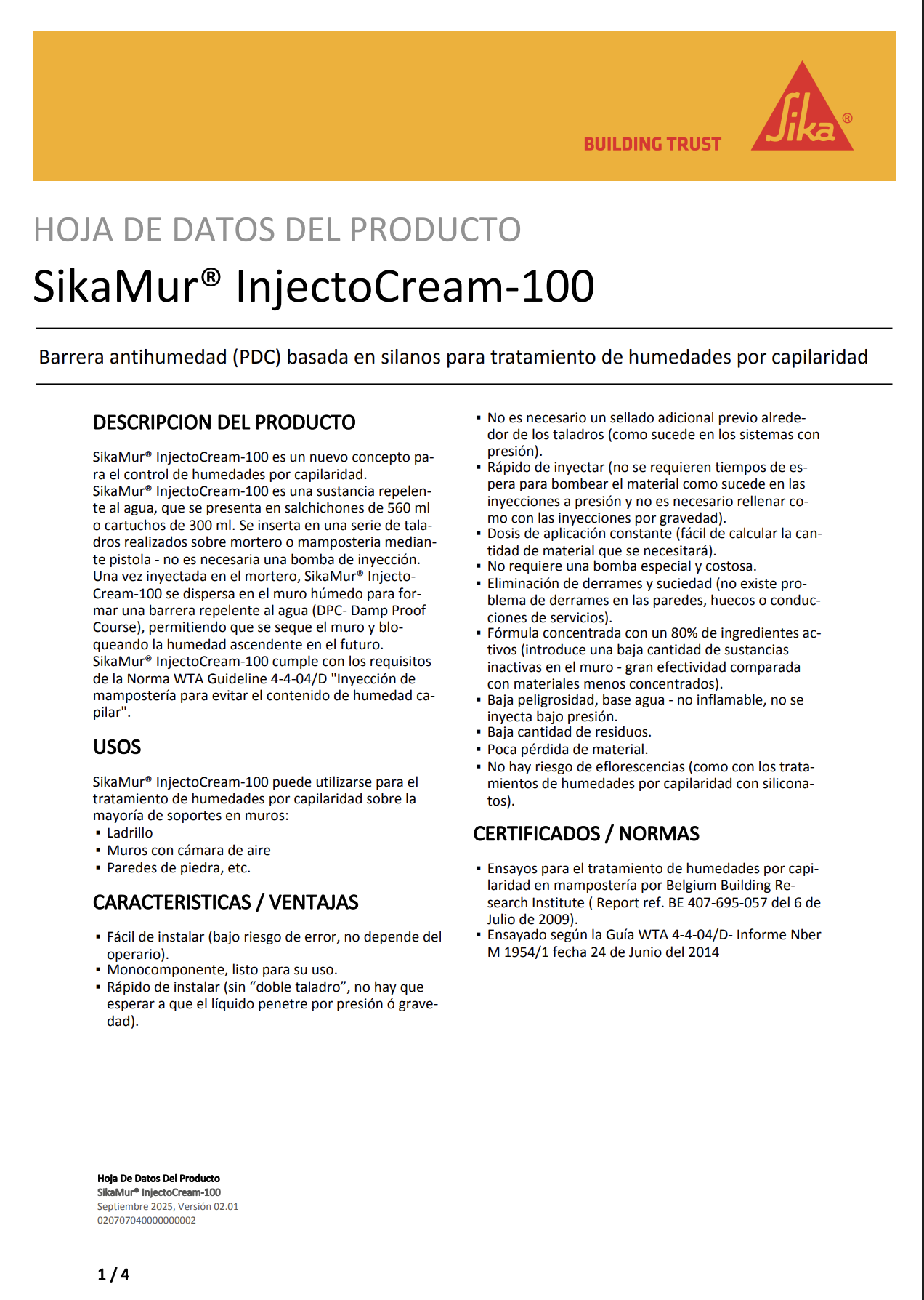 Fórmula concentrada con un 80% de ingredientes activos introduce una baja cantidad de sustancias inactivas en el muro - gran efectividad comparada con materiales menos concentrados.