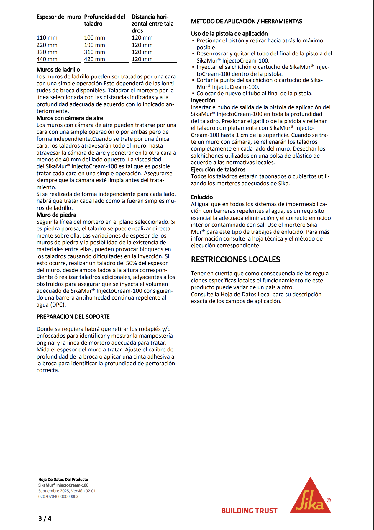 Barrera antihumedad basada en silanos, repelente al algua que se inserta mediante pistola creando una barrera que bloquea la humedad ascendiente en el futuro.