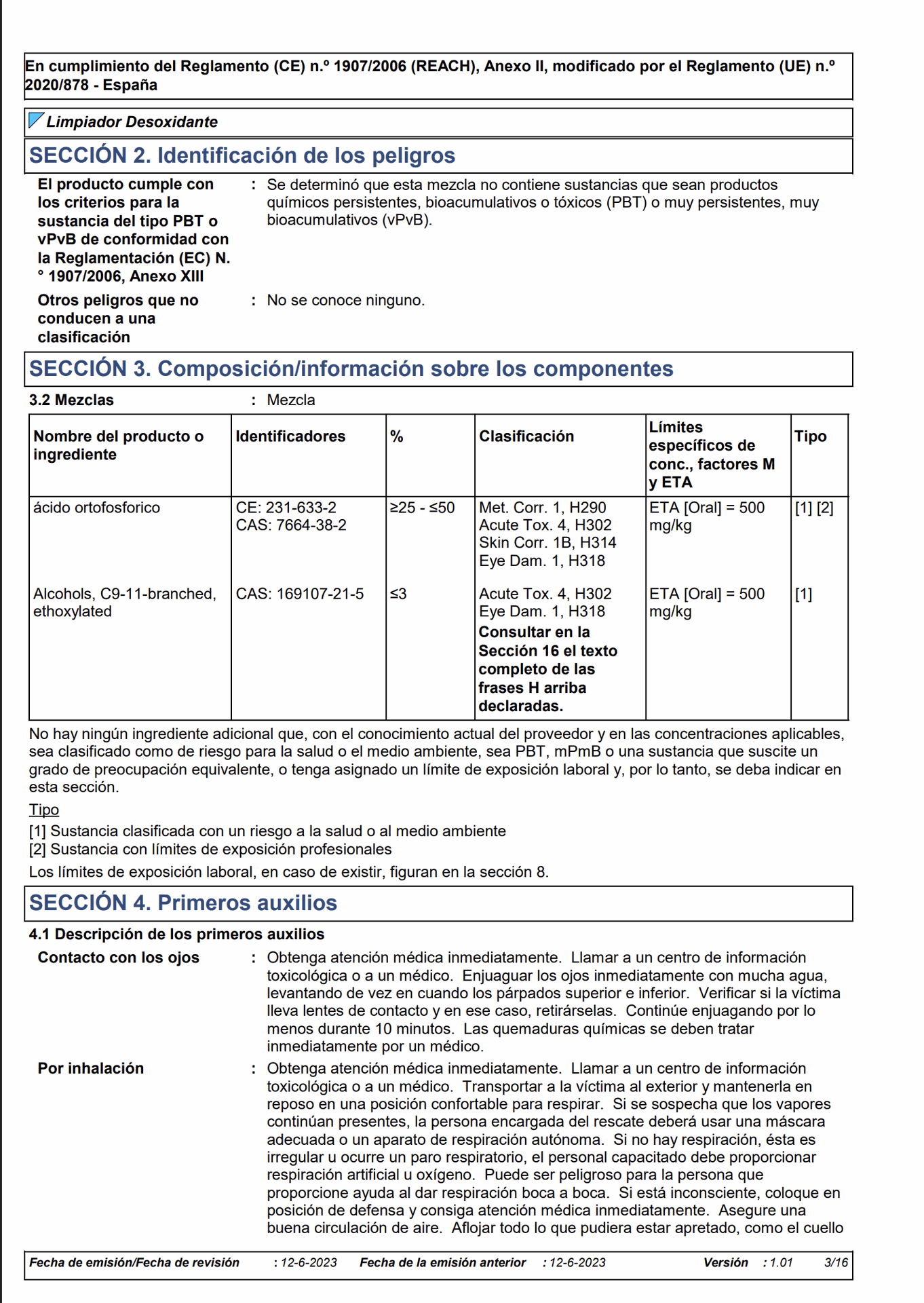 Desoxidante, desincrustante, desengrasante y antical para superficies como madera, hierro, metales, cromados, etc