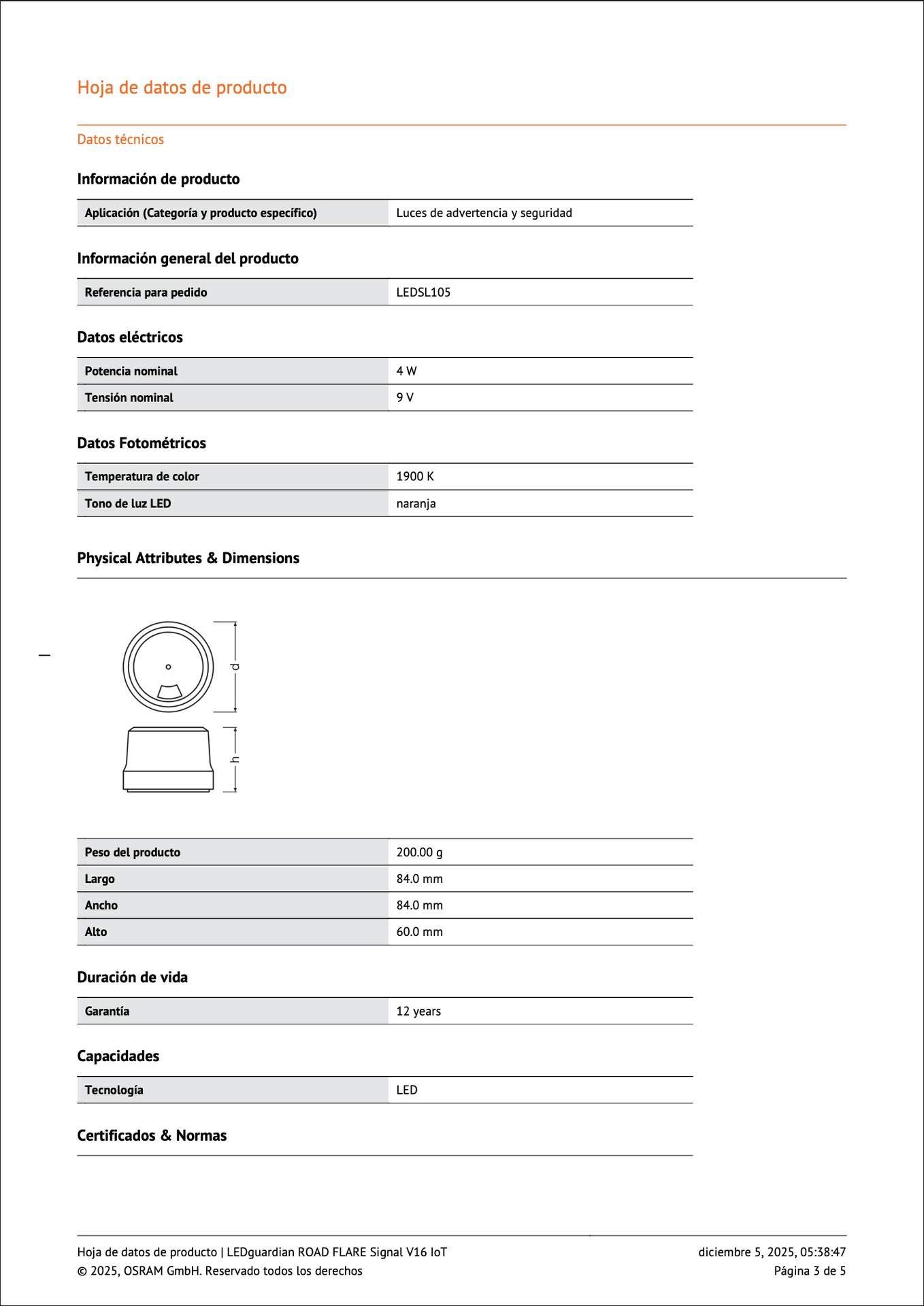 El diseño de este dispositivo prioriza la visibilidad en cualquier situación, ya que dispone de 10 LED de alta potencia que emiten una luz intermitente color ámbar visible a 360 grados, perceptible a gran distancia tanto de día como de noche. De hecho, gracias a una potencia luminosa de hasta 140 lúmenes y una temperatura de color cálido (2000 K), garantiza una advertencia clara y efectiva.